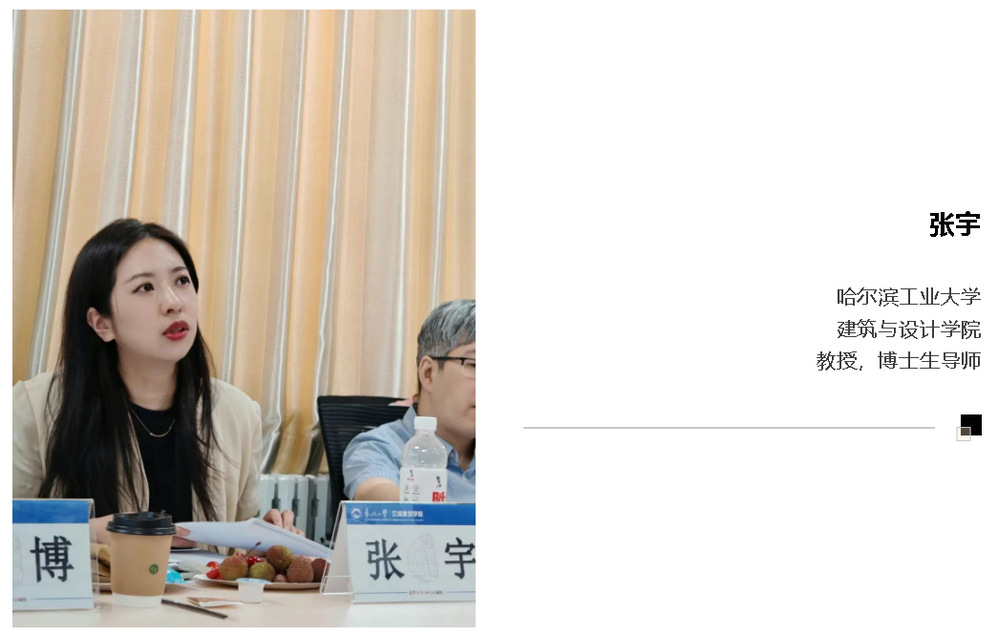 答辩委员会委员:吉林建筑大学建筑与规划学院教授周春艳;哈尔滨工业大学建筑与设计学院教授、博士生导师张宇;哈尔滨工业大学建筑与设计学院教授、博士生导师孟琪;天津大学建筑学院副研究员王超;四川省大卫建筑设计有限公司合伙人李博。