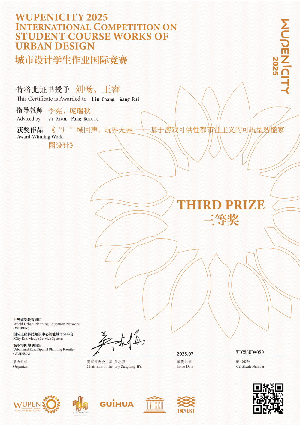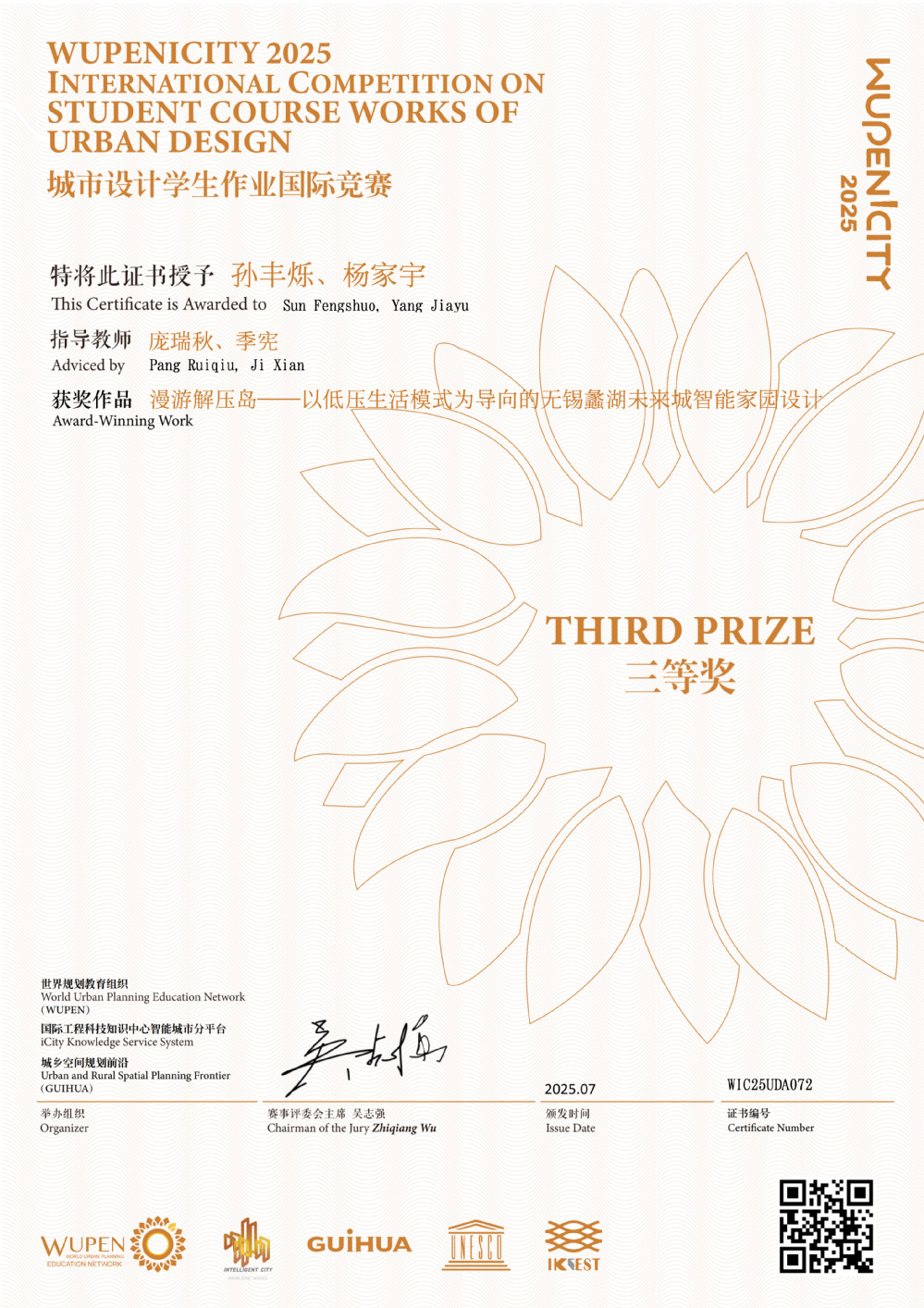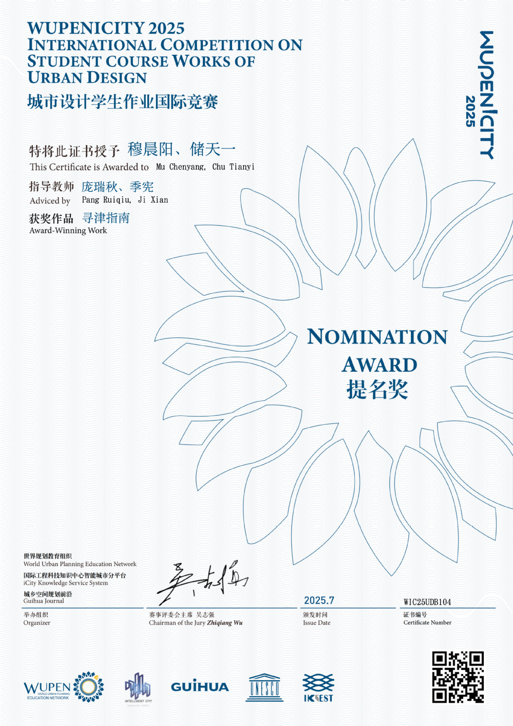 2025 WUPENiCity学生作业国际竞赛奖项于今年7月公布。近日,该竞赛的各类获奖证书由赛事主办方陆续发放。